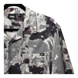 Vans New Watered Flora Quiet Shade Button Down Short Sleeve Black And Gray Shirt Size M NWT