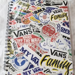 Vans notebook is new and is perfect for either taking notes, drawing or sketching, writing out ideas or stories, or anything else one can imagine. Cover is designed to give it a sticker bomb affect covered in various Vans stickers.