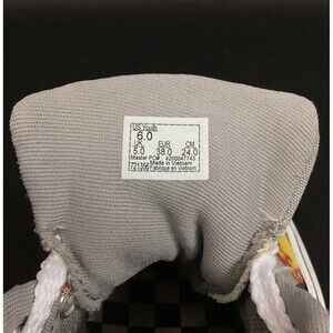 These shoes are in great condition! Minimal wear, inside and out! They are light gray with multi-colored dragons in an all-over print. Most of them are riding something, like bikes or surfboards, and a few of them are breathing fire. The inner sole is a checkered print in black and white. Youth size 6, UK size 5, and EU size 38.