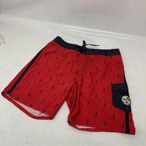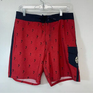 Vans Off The Wall Board Shorts Men Size 32 Novelty Print Palm Trees Red Swim