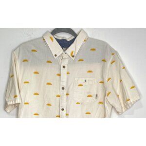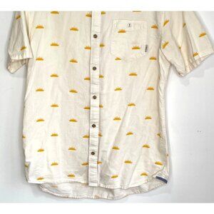 Vans Off The Wall Button Down Short Sleeve Shirt Sun Print Men Size L Chambray