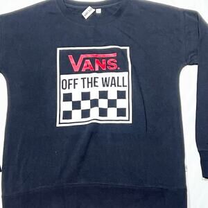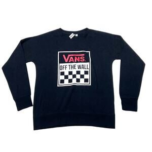 Introducing a Vans Off The Wall Classic Pullover Sweater in men's small, in black with a Vans logo graphic on the front. This sweatshirt offers a comfortable fit and classic streetwear style. This sweater is brand new.