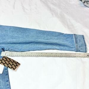 Introducing a Vans Off The Wall Denim Jean Jacket in women's medium, in a blue ocean wash color. This jacket features an embroidered small logo on the front, four pockets, and a classic button-up design. It is brand new.