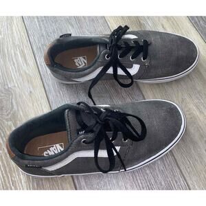 Vans Off The Wall Grey Canvas Leather Brown Trim Sneaker Shoes Youth US Size 5