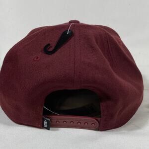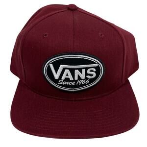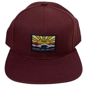 Introducing a lot of 3 Vans Off The Wall snapback hats in red, maroon, and gray colorways, each featuring an embroidered patch and classic skateboarding design. These hats offer adjustable snapback closures for a comfortable and customizable fit. All hats are new.