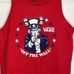 Vans Off The Wall Men's Graphic Tank Top Size M Cotton Red Uncle Sam Beer Helmet