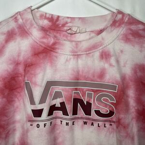 Vans Off The Wall Oversized Cropped Crewneck Sweatshirt Women Large Pink Tie Dye