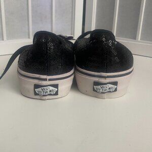 Van's Off The Wall Sparkling Black Sequin Sneakers Sz. 8.5 New with Tags. Incredible Sparkle for walking in the city, playing in shorts or jeans, nightclub or surprise under prom or wedding dress. Be the sparkle of any event. Extremely comfortable. Made when Van's first started marketing so the quality construction is high.