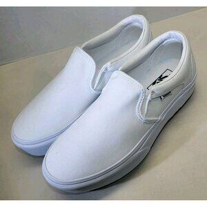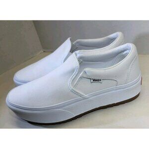 Vans Off The Wall Women's Canvas White Asher Platform ST Slip- On Shoe Sz 9.5 M