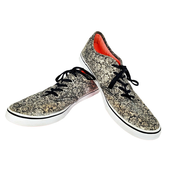 Vans Off The Wall Womens White Black Paisley Low Top Sneakers Shoes Size 9