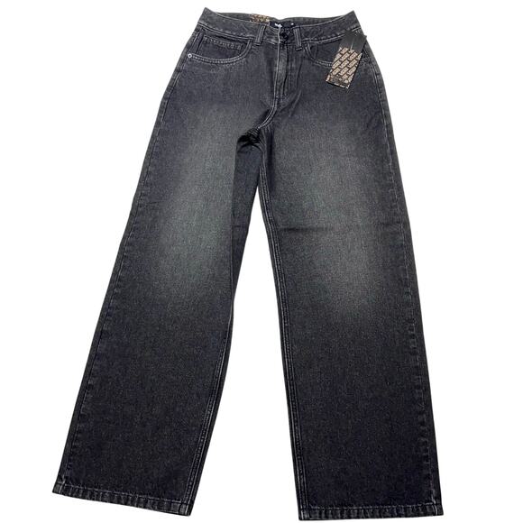 Vans Off the Wall Denim Jeans Women 26x30 Black Washed Wide Leg Baggy Loose Fit