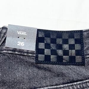 Introducing a pair of Vans Off the Wall Denim Jeans for women in size 26x30, featuring a wide leg, baggy, loose fit, in a black washed color. Item is new with tags.