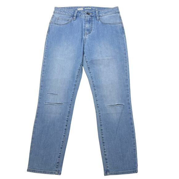 Vans Off the Wall Denim Jeans Women 5/27 Blue Distressed Straight Fit High Rise