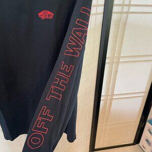 Vans Off the Wall long sleeve black tee with red lettering. "Off the Wall" written down both arms. Hardly worn. In good condition.