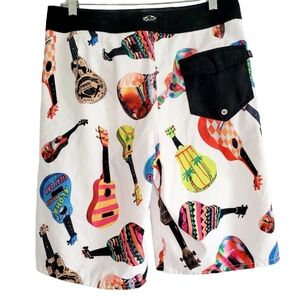 Vans Off the Wall Novelty Hawaiian Ukuleles All Over Print Swim Trunks Size 30