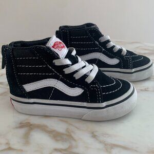 The Toddler Sk8-Hi back zip high top with a vintage sensibility offers increased access and versatility on this timeless favorite.