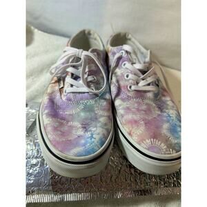 Vans Off The Wall Tie Dyed canvas lace up skate flat sneakers. These are fun spring colors. No box, but I will package these carefully for their new home.