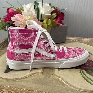 Vans Off the Wall Sk8-Hi Tapered Tie-Dye Hearts Fuchsia Pink Men’s Sz 5.5 Womens Sz 7