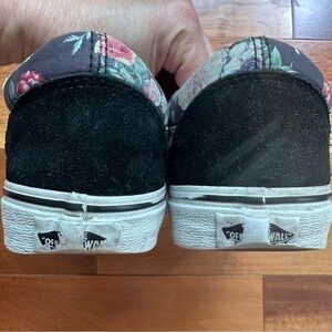 🌺Very well loved, some rips..on both shoes all seen in pictures..multiple pictures of same rips just different angles all are at top edge where you slip your foot in..Can easily be stitched💻