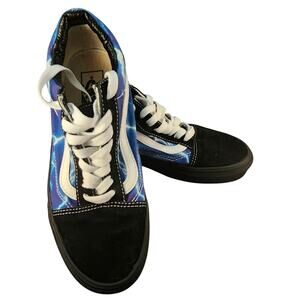 Vans Old Skool Black Blue Lightning Low Top Sneakers Men's 7 / Women's 8.5