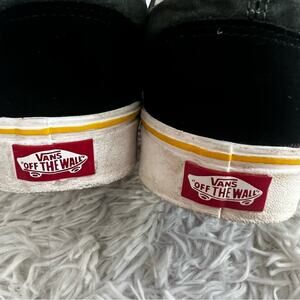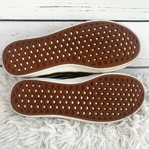 Classic Vans sneakers with a sleek black and Green tie-dye with white stripe design. Accented with a bold yellow stripe. Ideal for casual outings.