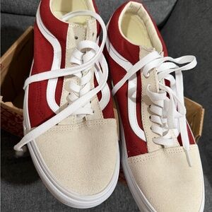 Vans Old Skool Canvas Suede Fire Brick White and Rust Mens 9 Womens 10.5 New