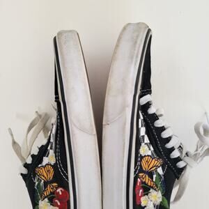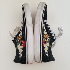Vans Old Skool Checker Floral Black Cherry Butterfly Embroidery Women 5.5