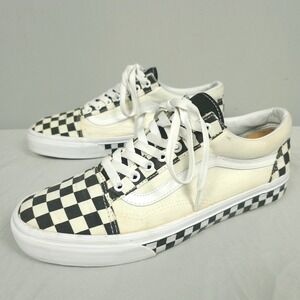 Vans Old Skool Checkered Shoes Women 11 Black White Canvas Sidewall Checkboard