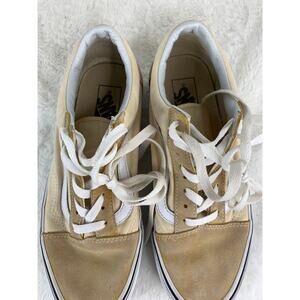 Step out in style with these Vans Old Skool Color Theory sneakers in a soft Honey Peach hue, Women's US size 9. Featuring the classic low-top silhouette with suede and canvas upper, signature white side stripe, and durable rubber waffle outsole. Ideal for casual wear, skateboarding, or adding a pop of color to any outfit. Pre-owned in good condition—please view the photos to see the item’s condition.
