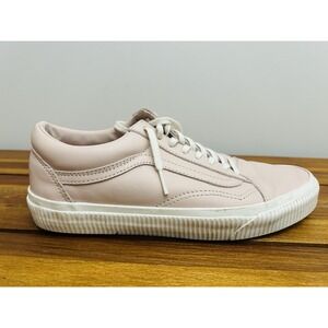 These Vans leather low tops in a soft blush pink color are the perfect mix of casual and sleek. Women's size 8.5 with classic white rubber soles and tonal stitching. Ideal for everyday outfits, back-to-school season, or anyone loving a clean neutral tone. Gently pre-owned with minor creasing, but tons of wear left and a stylish look that goes with everything.