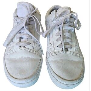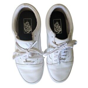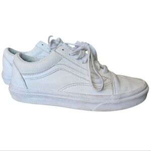 Vans Old Skool Leather Low-Top Sneakers White Women’s Sz 6.5 Classic Minimalist Streetwear