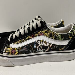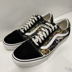 Vans Old Skool Men’s 9.5 Beauty Skull Black True White Canvas Suede Skate Shoes