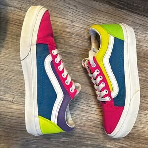 Vans Old Skool Neon Color Block Skate Shoe Pink Purple Yellow Blue Green Kids 3