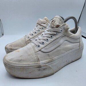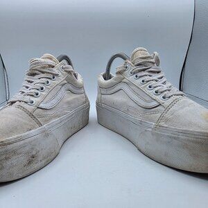 Vans Old Skool Platform Womens Size 8.5 Triple White Athletic Shoes Walking