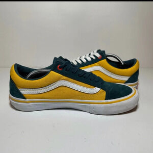 Vans Old Skool Pro Gold Canvas with Green Suede Skateboard Shoes 500714 Mens 7 see pictures for reference