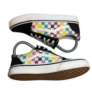 Vans Old Skool Rainbow Checkerboard Girl’s Missy 4 Sneakers Canvas Suede Low Top