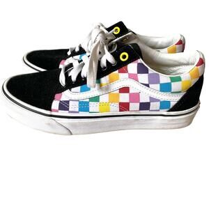 Vans Old Skool Rainbow Checkerboard Sneakers Women’s 8.5 Men’s 7 in excellent condition except for needs some cleaning on rubber