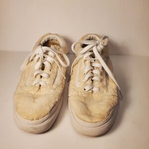 Vans Old Skool Sherpa Turtledove Sneakers Sz 6.5. Really unique Vans covered in sherpa! Very soft and cozy. Great used condition! Tie up closure.