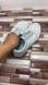 Vans Old Skool Shoe Light Blue with gold eyelet, gold stitching. Women Size 9.5