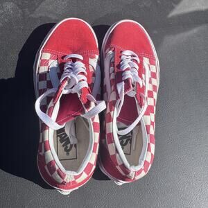 Vans Old Skool Shoes Mens Size 5 Womens 6.5 Red White Checkerboard Skate Low