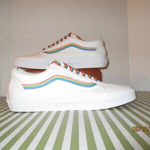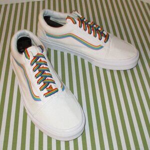 White Canvas with Rainbow Striping and Laces [Red, orange, yellow, green, blue, dark plum, lavender]
