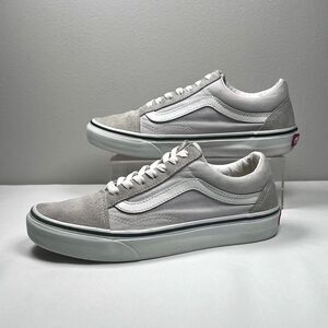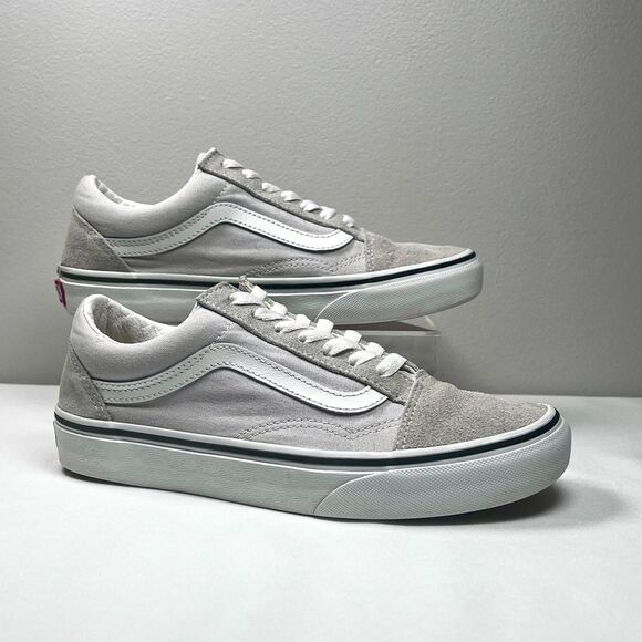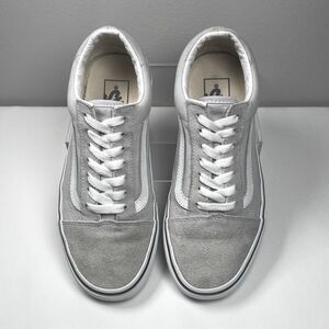 Classic Vans Old Skool sneakers in a versatile light grey colorway (resembles Drizzle or Silver Cloud). Features the iconic white side stripe, suede toe and heel panels, and durable canvas sides.