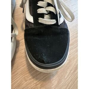 Vans Old Skool Stacked Black Satin Platform Shoes Flower Design Size 7.5 WOMENS