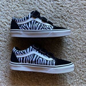 Vans Old Skool Velcro Suede Canvas Black Zebra Sneakers Size 7