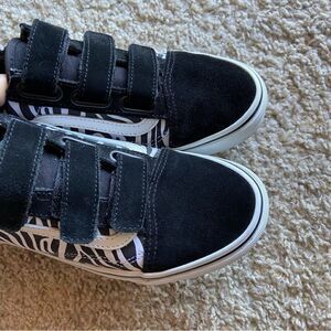 Vans Old Skool Velcro Suede Canvas Black Zebra Sneakers Size 7
