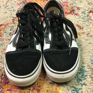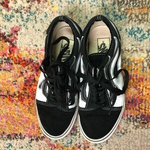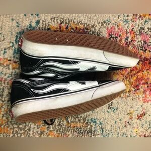 Vans Old Skool White Flames Skateboard Shoes # 507698 Men's Size 5 Black White