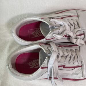 Vans Old Skool White Leather With Pink BOLTS - Size 7.5 Women’s
