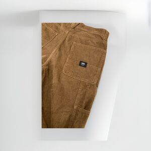 Bring classic skater style to life with these Vans Men’s Corduroy Drill Chore Pants. Made from fine wale corduroy in a versatile brown, these pants combine a loose / baggy fit with durable carpenter-style utility details. Perfect for skater vibes, streetwear looks, or casual athleisure outfits, they balance comfort and edge with Vans’ signature style. Whether you’re skating, hanging out, or dressing with a minimalist twist, these pants deliver everyday versatility.