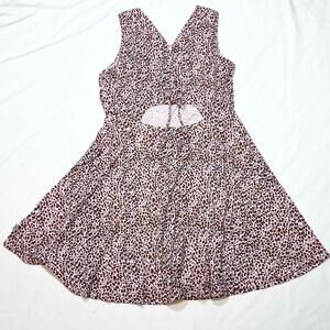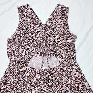 Introducing a Vans Papercuts dress in junior XL, in leopard print. This mini dress features a flared skirt, fitted bodice, and a cutout detail on the lower back, made from soft stretch fabric, and is new with tags.