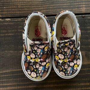 Introducing the Vans Peanuts The Gang Black Skateboard Classic Slip On Toddler Kids SZ 4.5!